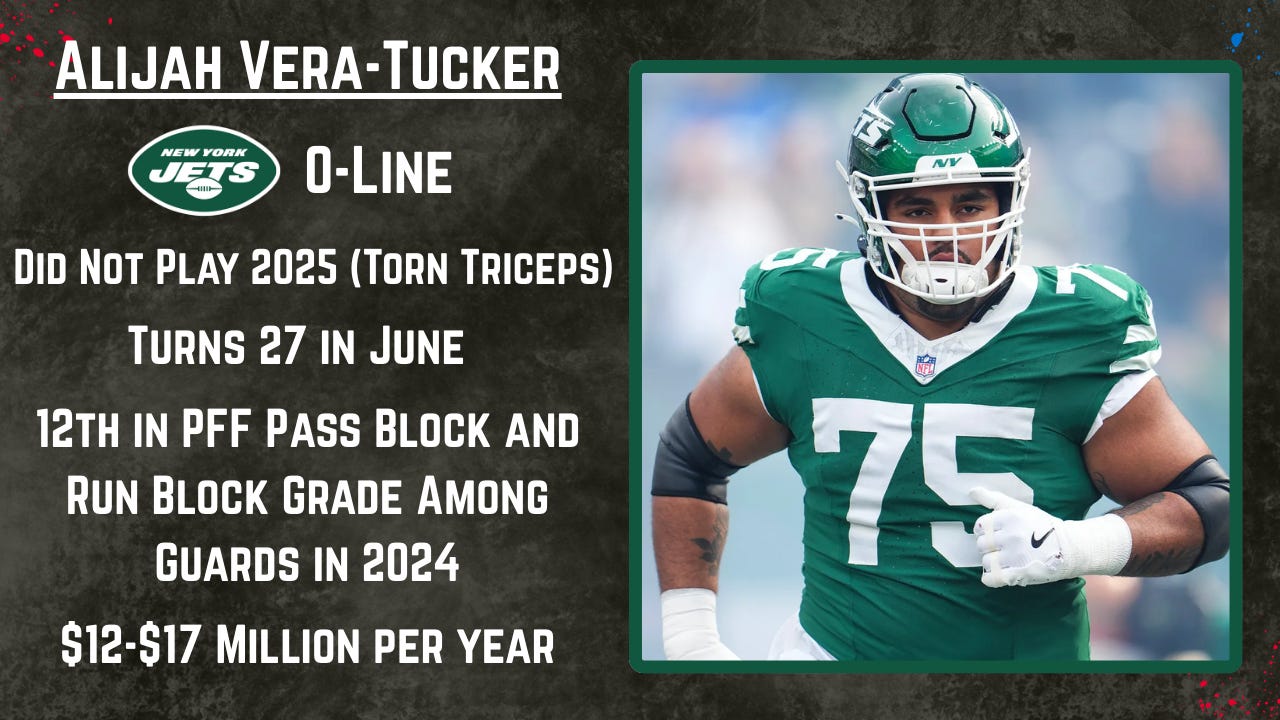 Vera-Tucker will be a fascinating case study. He is in the prime of his career from an age standpoint. When he played in 2024, he was an excellent player. He’s missed more than two years' worth of games due to injuries in his career. The contract projection market is all over the place. He might want to prove his abilities on a shorter deal, but perhaps a gamble on him staying healthy and not costing too much would be prudent. If the Texans made this move, they need a worthwhile backup plan in the building.